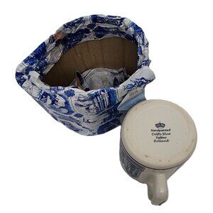 RARE COLLECTIBLE Handpainted Delfts Blue Delfino Holland Amsterdam Mug. The robust porcelain keeps your drink warm, so you can linger over a hot cup of tea or coffee after dinner, or treat yourself to a morning coffee moment. Each item in our hand-painted collections is a work of art, with a unique appearance and a story rooted in the rich tradition of Delft Blue.At Heinen Delfts Blauw, we cherish the rich tradition of hand-painted Delft Blue ceramics. In our ateliers in Delft, we create Delft Blue pottery of the highest quality, crafted with love and skill. Each Handpainted piece exemplifies pure craftsmanship, designed and produced in the Netherlands. 4 in x 3.5 in (5 in with handle)