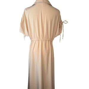 Deli.S Beige Size 8 Button-Down Midi Dress Drawstring Waist & Tie Sleeves