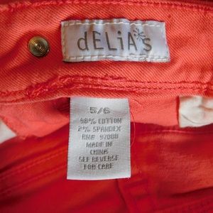 Unique and colorful Delia coral capris. Great for a summer night out! Lightly worn, just became too small to wear. Size is a 5/6 for juniors.