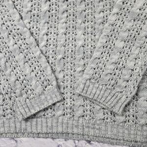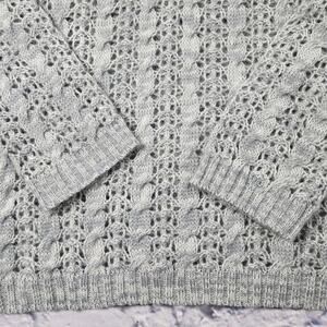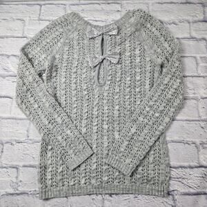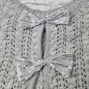 Delias Back Sequin Bow Sweater Light Gray size Small Loose Knit Keyhole Holiday