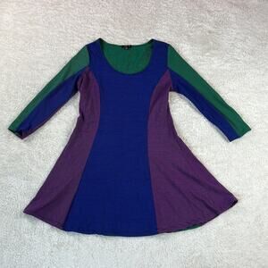 fun color block stripes with lots of stretch and 3/4 length sleeves. No pockets, and no zippers.