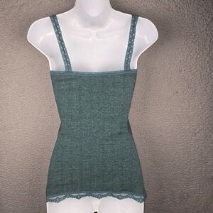 Delias Green Lace Trim Ribbed Camisole Cami Tank Top Small Y2K Vintage