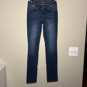 Delia’s youth brand Jayden straight leg Jean. Size 5. Dark wash with two button and zip fly closure.