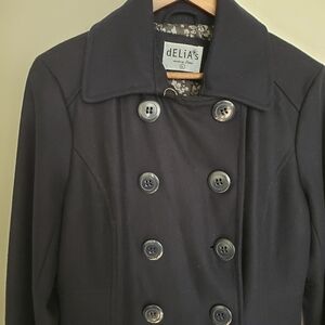 Delia's Navy Blue Wool Coat Chunky Button Large