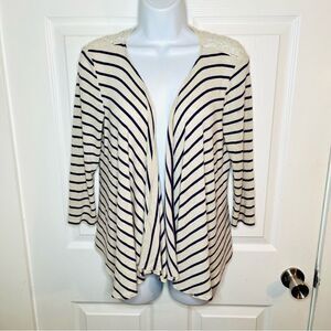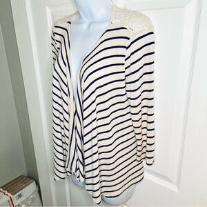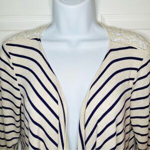 Delia’s Purple Stripe Lace Shoulder Open Front Drapey Knit Cardigan Cream S
