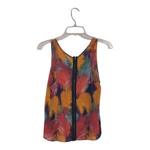 Delia's Women's Sheer Tank Top Feather Print Colorful Sleeveless Size Medium