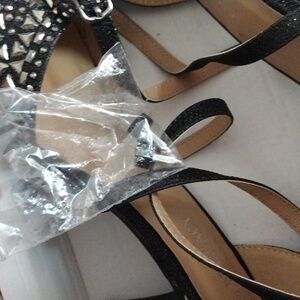 Elegant black heels with sparkling silver accents. Perfect for evening wear.