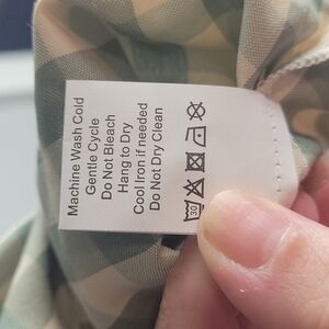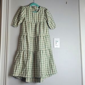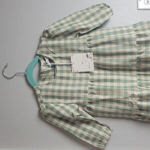 Classic makes a comeback with this charming gingham print, tiered robe with its ¾elasticized sleeve. Green gingham sold out online. 2 back buttons.