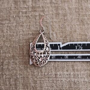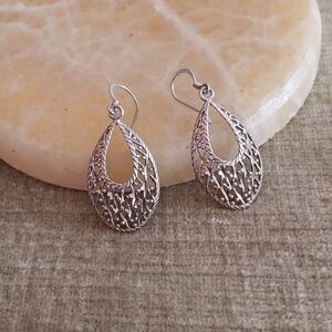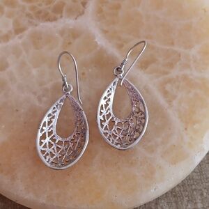 Delicate 925 Sterling Silver Cut Out Tear Drop Dangle Earrings