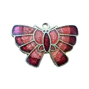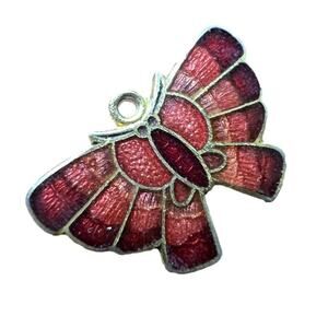 Delicate Butterfly Necklace Pendant Bracelet Charm Metallic Red and Gold Tone