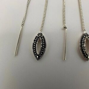 Delicate Charles Winston 925 Sterling Silver Marcasite Threader Earrings