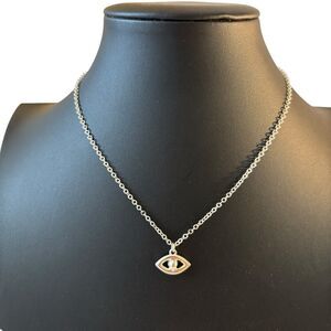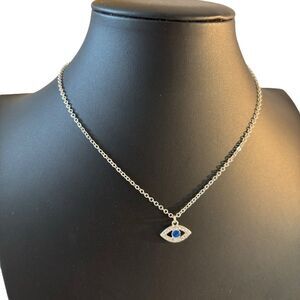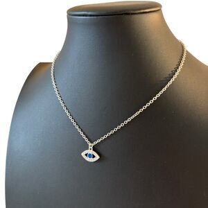 Delicate Evil Eye Pendant w/ Clear Pave Crystals & Blue Stone.