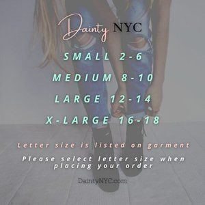 Dainty NYC offers women's fashion clothing clothes dresses tops shirts blouses jackets coats jumpers rompers jumpsuits loungewear hoodies cardigans pants jeans skirts trousers leggings shorts sportswear nightwear swimwear lingerie shirt lace bodycon faux fur shoes sandals slippers boots jewelry bags breathable lightweight fabric soft comfy casual cotton knit boho chic classy glam trendy romantic winter spring summer fall autumn 80's 90's silver rose gold