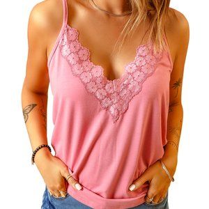 Delicate Floral Lace V Neck Spaghetti Strap Tank Top Pink