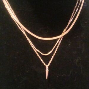 Delicate Gold Tone Three Strand Multi Chain Necklace *