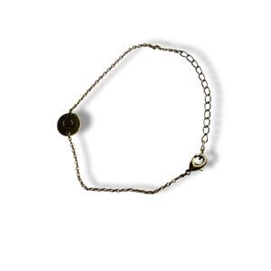Delicate Goldtone Chain Bracelet "C" Charm Medal 5.5-7.5"