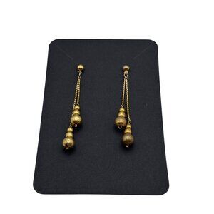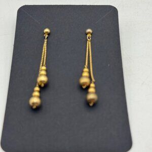 Delicate Goldtone Chain Dangle Earrings With Bead Accents Lightweight Vintage