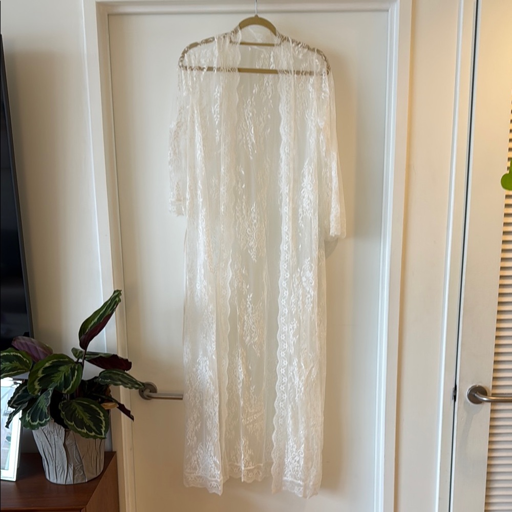 Chic cream lace robe. Ideal for wedding day and getting ready photos or layering. Floor length. Worn once briefly on my wedding day so in perfect condition!