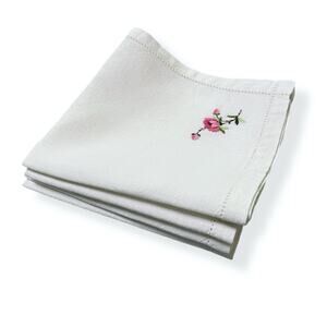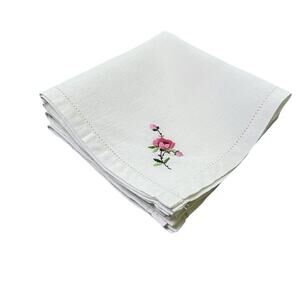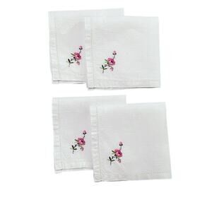Delicate Linen Napkins Vintage Set 4 Embroidered Corner Flower Pink Green 11x11