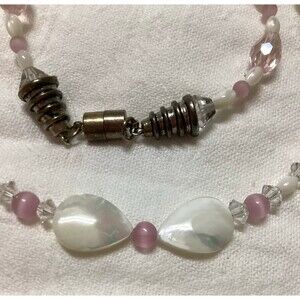 Delicate Necklace with Pink Glass Beads Shells & White Bead with Magnetic Clasp