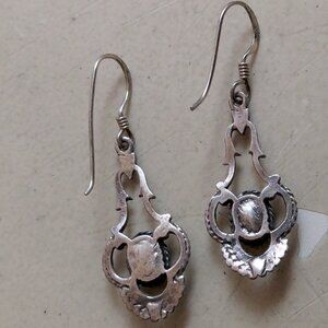 Delicate Ornate Sterling Dangle Earrings with Emerald Colored Inlay