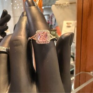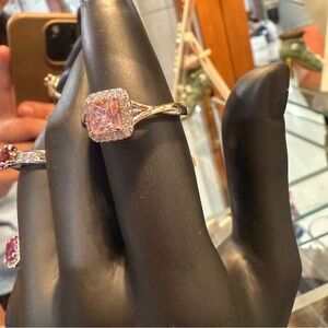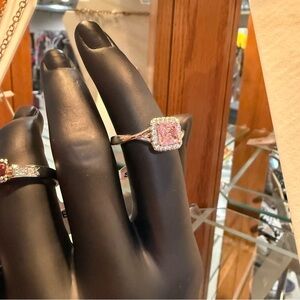 These exquisite rings showcase a delicate design with a prominent pink stone set in a sleek silver band. The rectangular cut stone catches the light beautifully, making it a perfect accessory for any occasion.