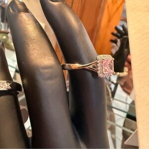 Delicate Pink and Silver Split Shank Ring Size 9 promise ring gift engagement