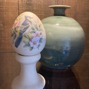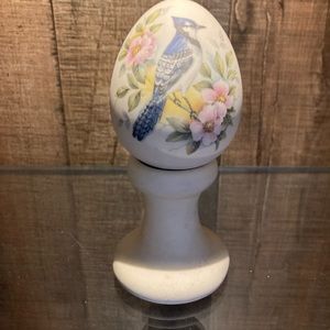 Delicate Porcelain Blue Jay Egg w/ Stand