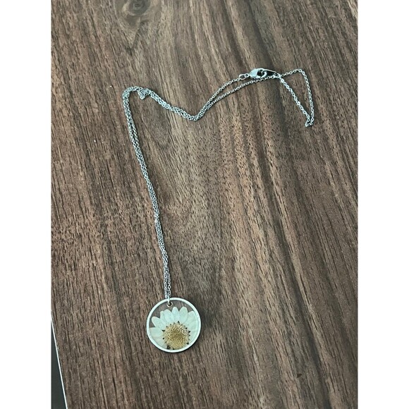 Delicate Pressed Flower Necklace Jewelry Dried Flower Daisy silver necklace