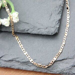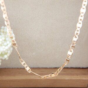 A sleek and minimal rose gold necklace with flat interlocking links, perfect for subtle elegance and effortless layering.