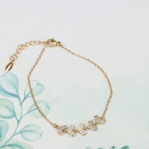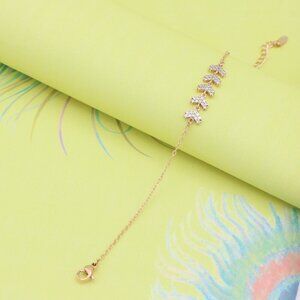 "Delicate Rose Gold Leaf Chain Bracelet with CZ Stones, XPBL0754
