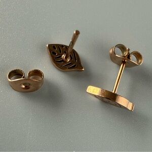 Delicate Rose Gold Leaf Studs - Hypoallergenic Small Studs for Everyday Elegance