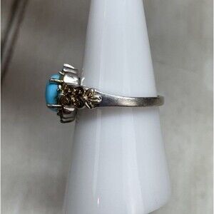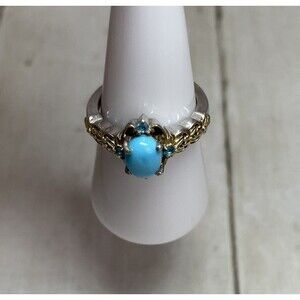 Delicate STS Turquoise and Neon Apatite 925 SS Ring Two Toned Sz 7