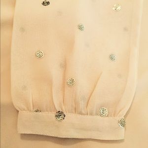 Sheer, delicate sequin detail on long sleeves, polyester "nude-peach" top. Brand: Intelligence. Worn once. Perfect condition.