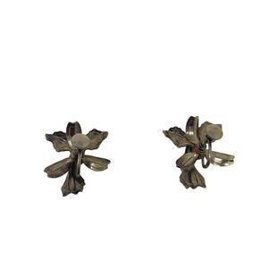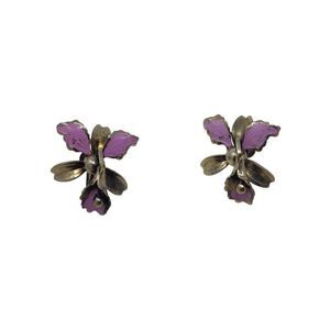 Delicate vintage 1940s–1950s floral screw-back earrings with soft lavender enamel petals and silver-tone sculpted metal details. The curved petal design and romantic coloring evoke an orchid or wildflower look. Lightweight and comfortable with secure screw-back closures. A dreamy, feminine addition to any vintage collection. Very good vintage condition with minor enamel wear.