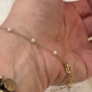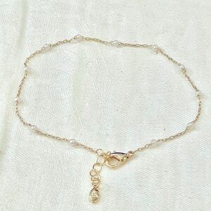 Delicate anklet gold tone faux pearl station dainty adjustable up to 10 inches