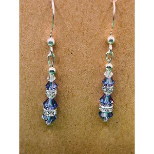 Delicate setting with eye catching stones in blue gray and clear. Fish hook style.