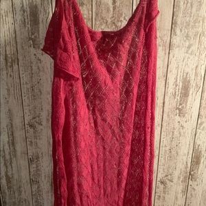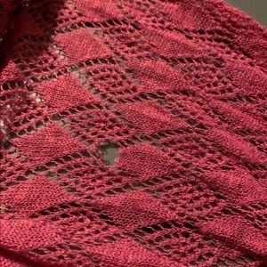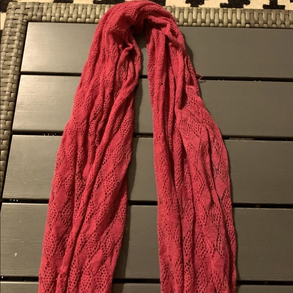 Light and airy raspberry scarf. Bought from banana republic I believe but I removed the tags bc the material was so flowy and light. There is a small hole that can easily be hidden when the scarf is on. Non smoking home.