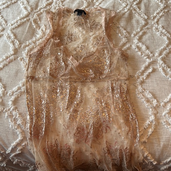 Lacey overlay tank top. Very pretty paired with camisole or skinny strap tank top.