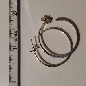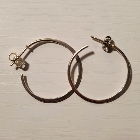 Thin and airy hoop earrings with post back. Timeless style and simplicity. Some light signs of tarnish, expect it will clean right off.