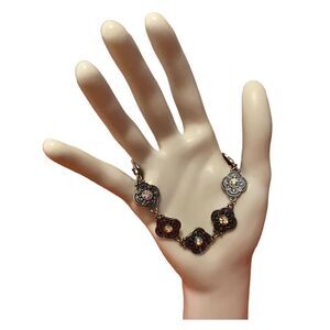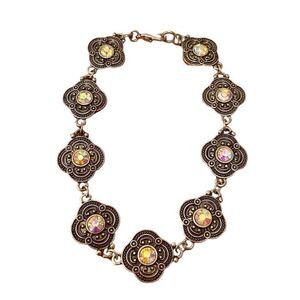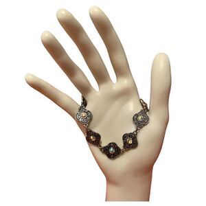 Delicate Looking Filigree & Iridescent Crystal Silver Toned Bracelet.