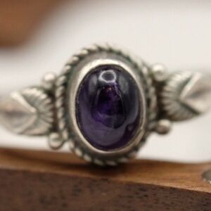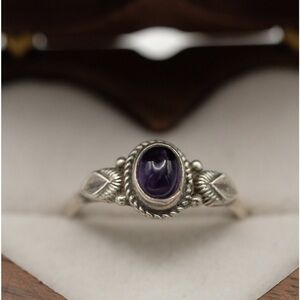 Delicately Intricate Vintage Amethyst size 8 Ring Sterling Silver