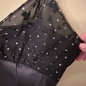 Delicates Black Satin Nightgown Sz S Sheer Lace Rhinestone Glam Party Sexy