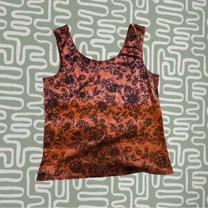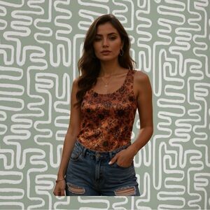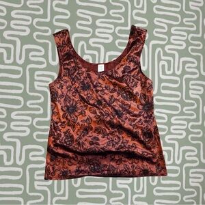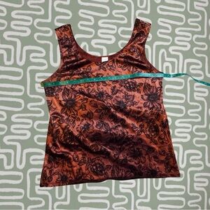 Chic floral design. Vibrant copper color. Perfect to dress up or dress down.