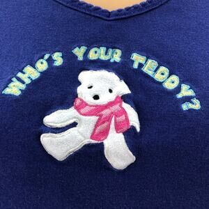 Delicates (L) Blue Who's Your Teddy? Embroidered Teddy Bear Tee Top Shirt V-Neck