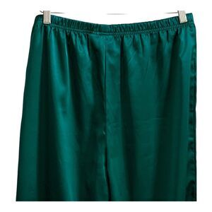 Delicates Pajama Set Womens LARGE Green Satin Long Sleeve Elastic Waist PJs