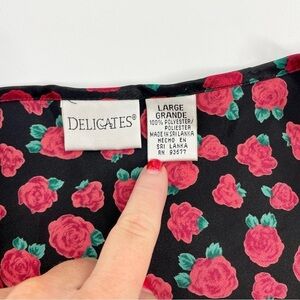 Delicates Rosebud Whimsigoth Lingerie Y2K Mini Satin Slip Dress L Dolls Kill aesthetic. Vintage adjustable strap 90s grunge style. Has front double thigh split. In excellent barely worn if ever condition. Stock photos are not original dress, just used for style purpose.