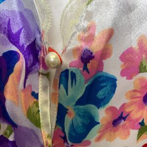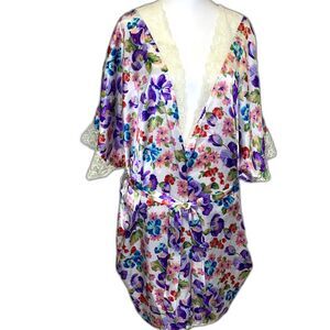 Delicates Trad Wife Satin Floral Lace Trimmed Satin Tie Pockets Robe Large