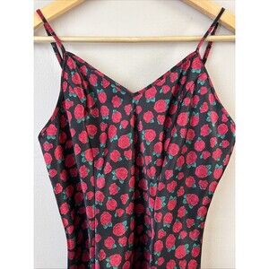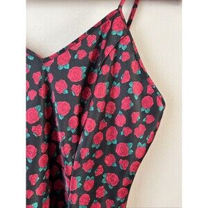 Delicates Women’s Nightgown Black Red Rose Print Slip Sleepwear Size Small