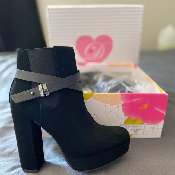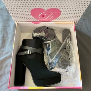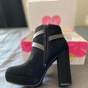 Tall heel black booties. Side zip up. Never worn before only tried on. Size 5 1/2 but can fit up to a 6 1/2.